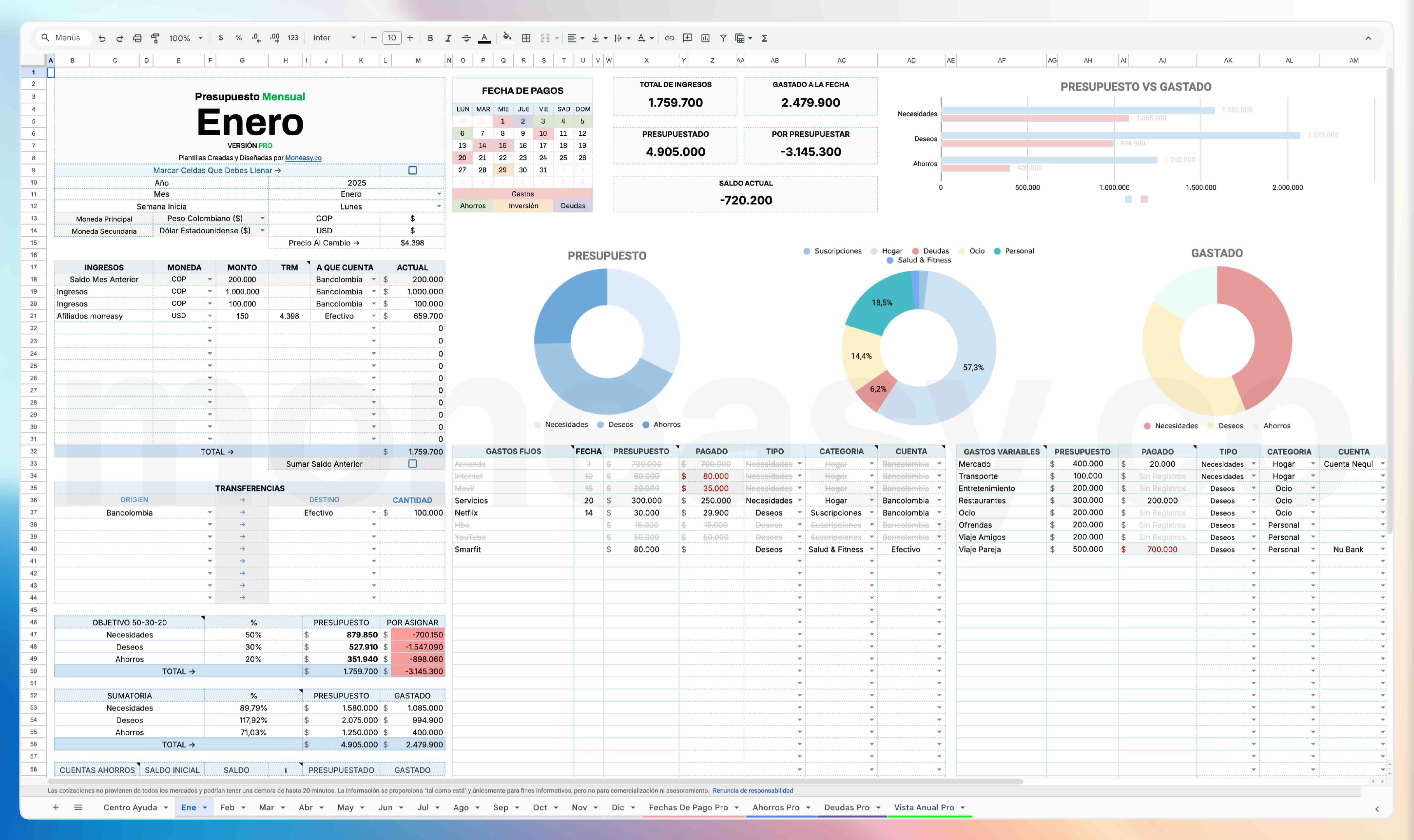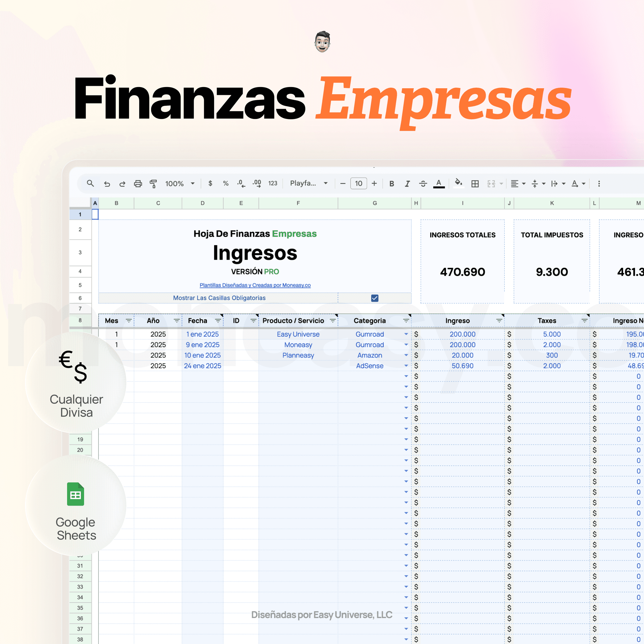 Una plantilla premium diseñada en Google Sheets para brindar estabilidad financiera, sin complejidad.